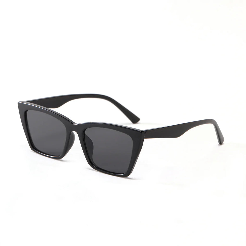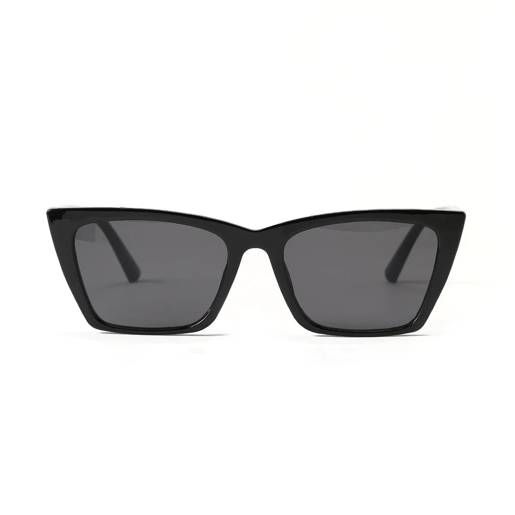 Shield your eyes in style. Made with retro-inspired rectangular frames, THE KIARA makes protecting your eyes as a stylish affair. Featuring cat-eye frames, black detailing, dark tinted lenses.