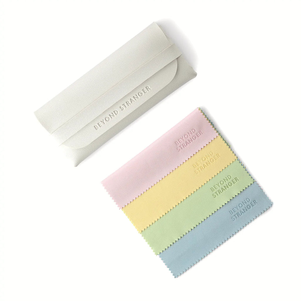 Each pair of sunglasses comes with a vegan leather protective pouch.