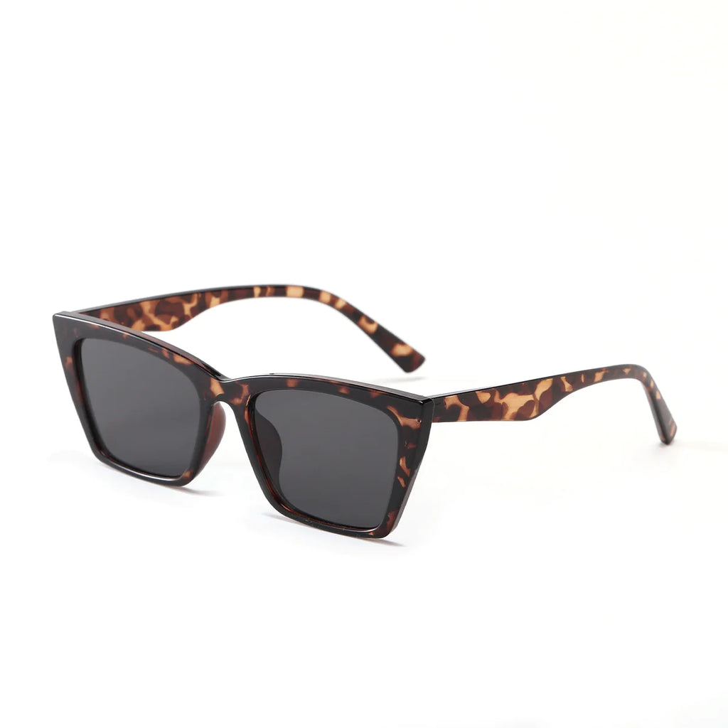 Shield your eyes in style. Made with retro-inspired rectangular frames, THE KIARA makes protecting your eyes as a stylish affair. Featuring cat-eye frames, tortoiseshell detailing, and dark tinted lenses.