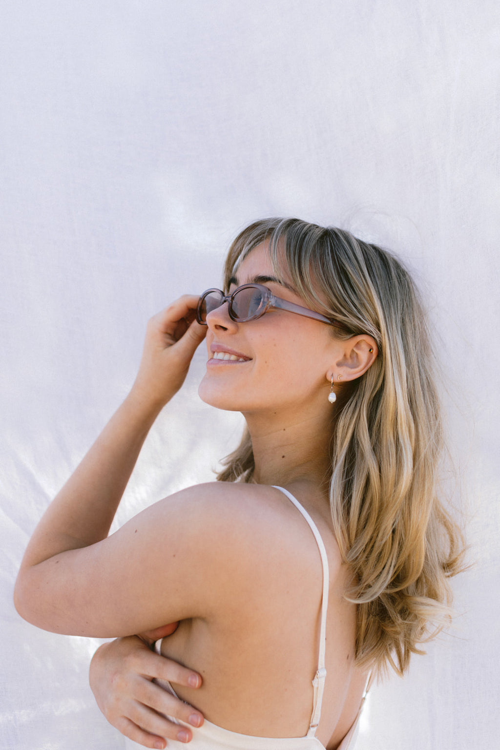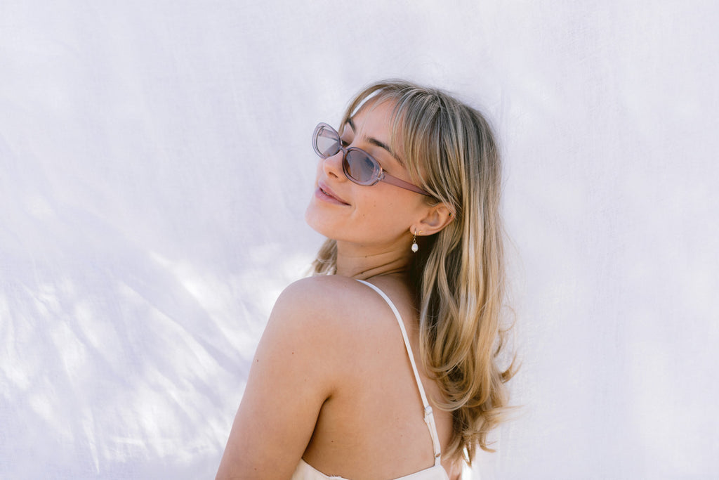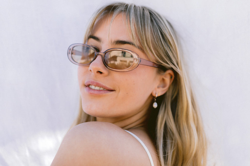 Each pair of sunglasses comes with a vegan leather protective pouch.