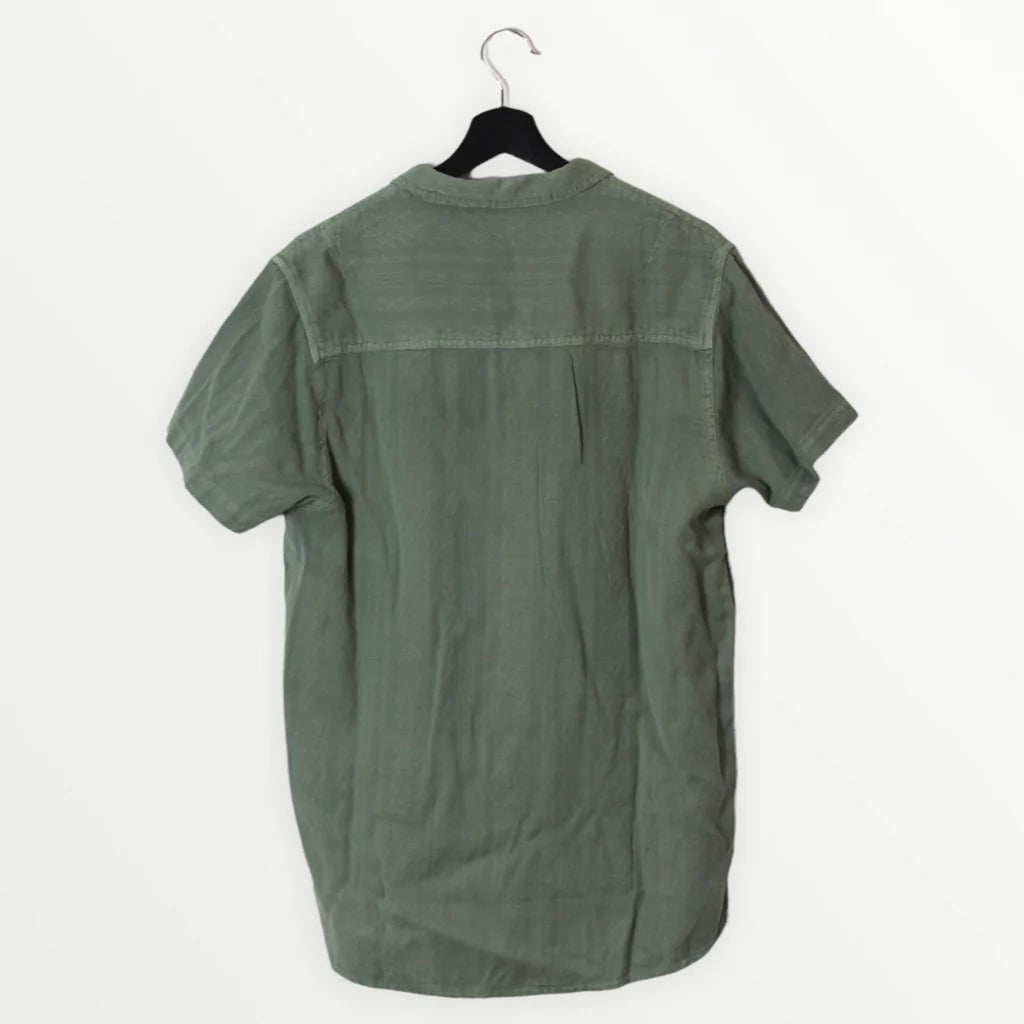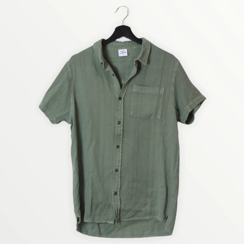 A comfortable textured short sleeve button up in a subtle native green tone.